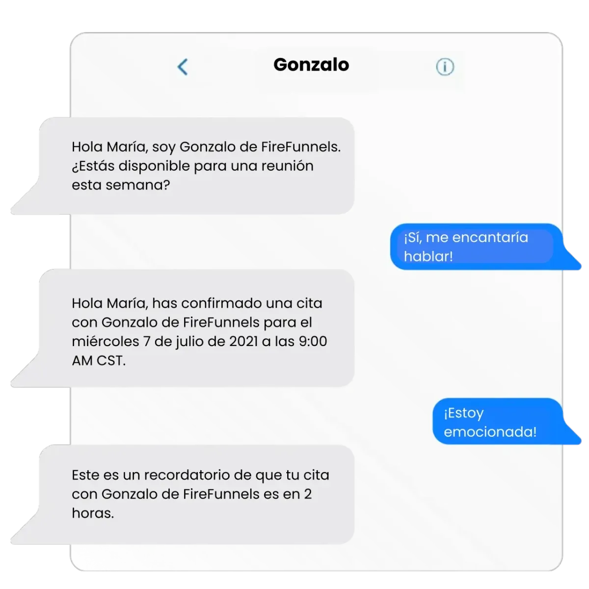 Crea conversaciones por mensaje de texto con el objetivo de agendar citas en el calendario sin interacción humana.