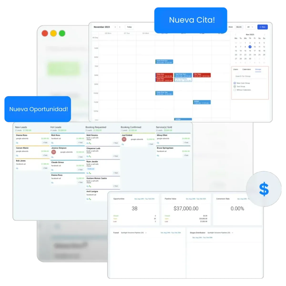 Con el CRM integrado de FireFunnels, puedes ver todo el recorrido de cada lead, dar seguimiento sin perder oportunidades y cerrar más ventas con menos esfuerzo.