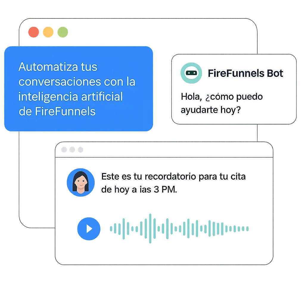 FireFunnels es todo lo que necesitas para gestionar tus leads, páginas web, embudos, calendarios, Inteligencia Artificial y mucho más para mantener felices a tus clientes.